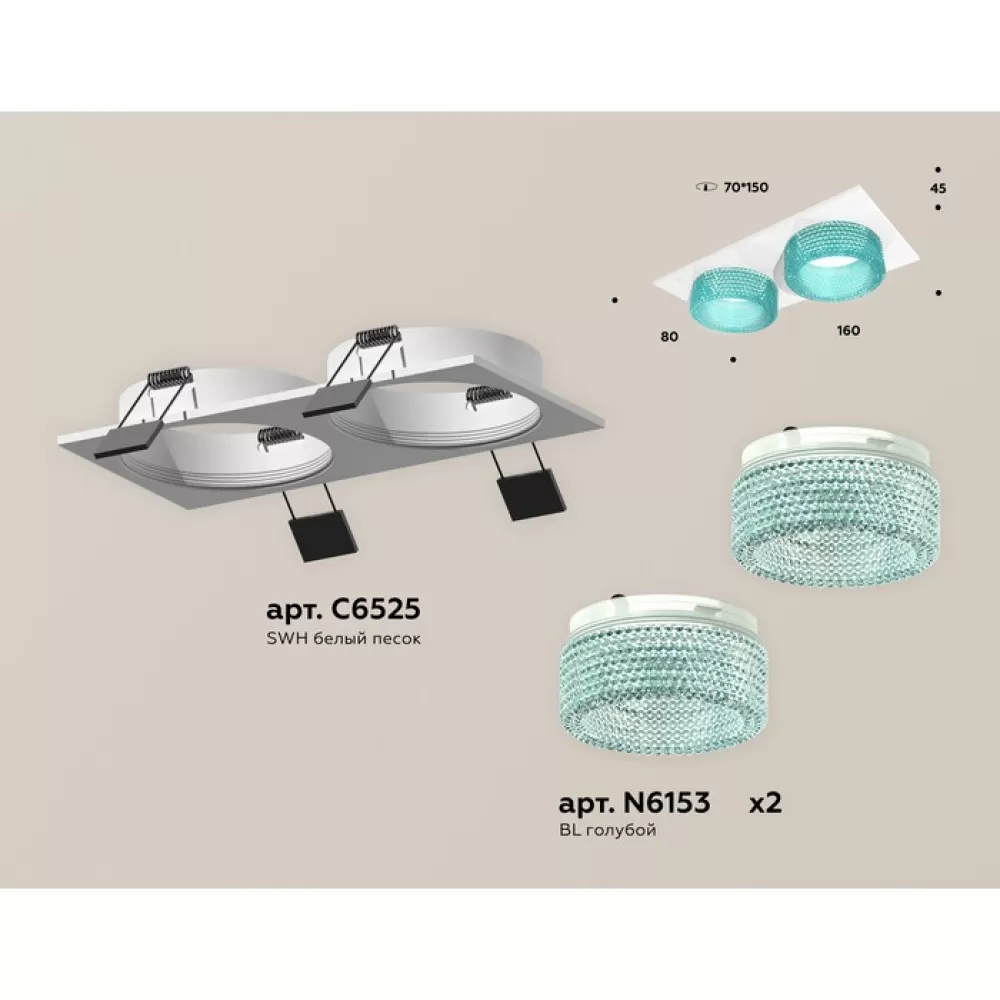 XC6525043 SWH/BL белый песок/голубой MR16 GU5.3 (C6525, N6153) Комплект встраиваемого светильника с композитным хрусталем