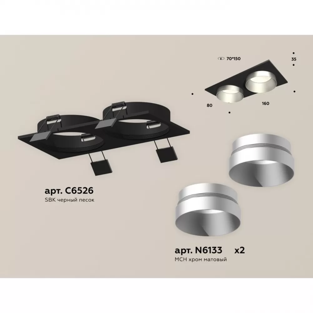 XC6526023 SBK/MCH черный песок/хром матовый MR16 GU5.3 (C6526, N6133) Комплект встраиваемого светильника