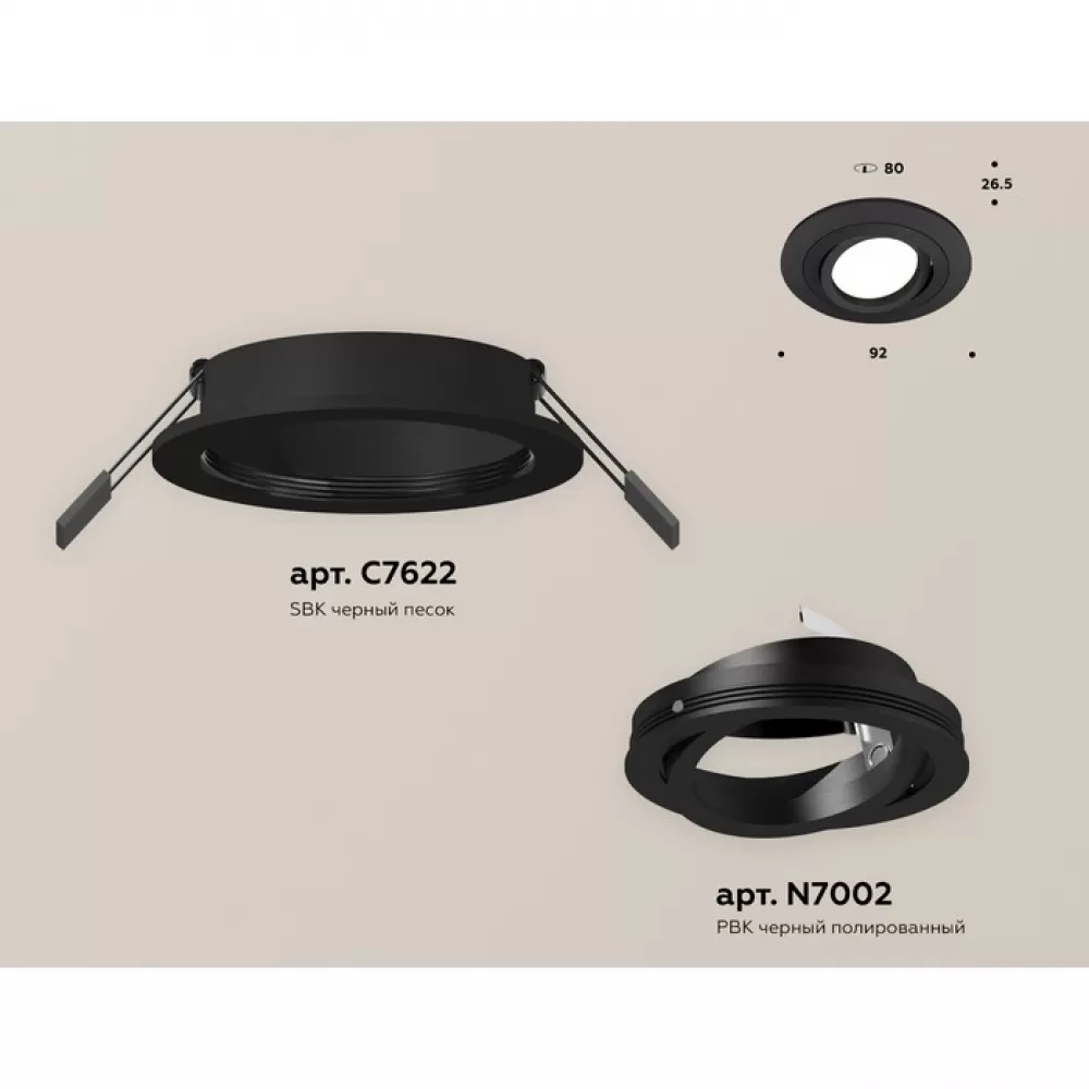 XC7622081 SBK/PBK черный песок/черный полированный MR16 GU5.3 (C7622, N7002) Комплект встраиваемого поворотного светильника