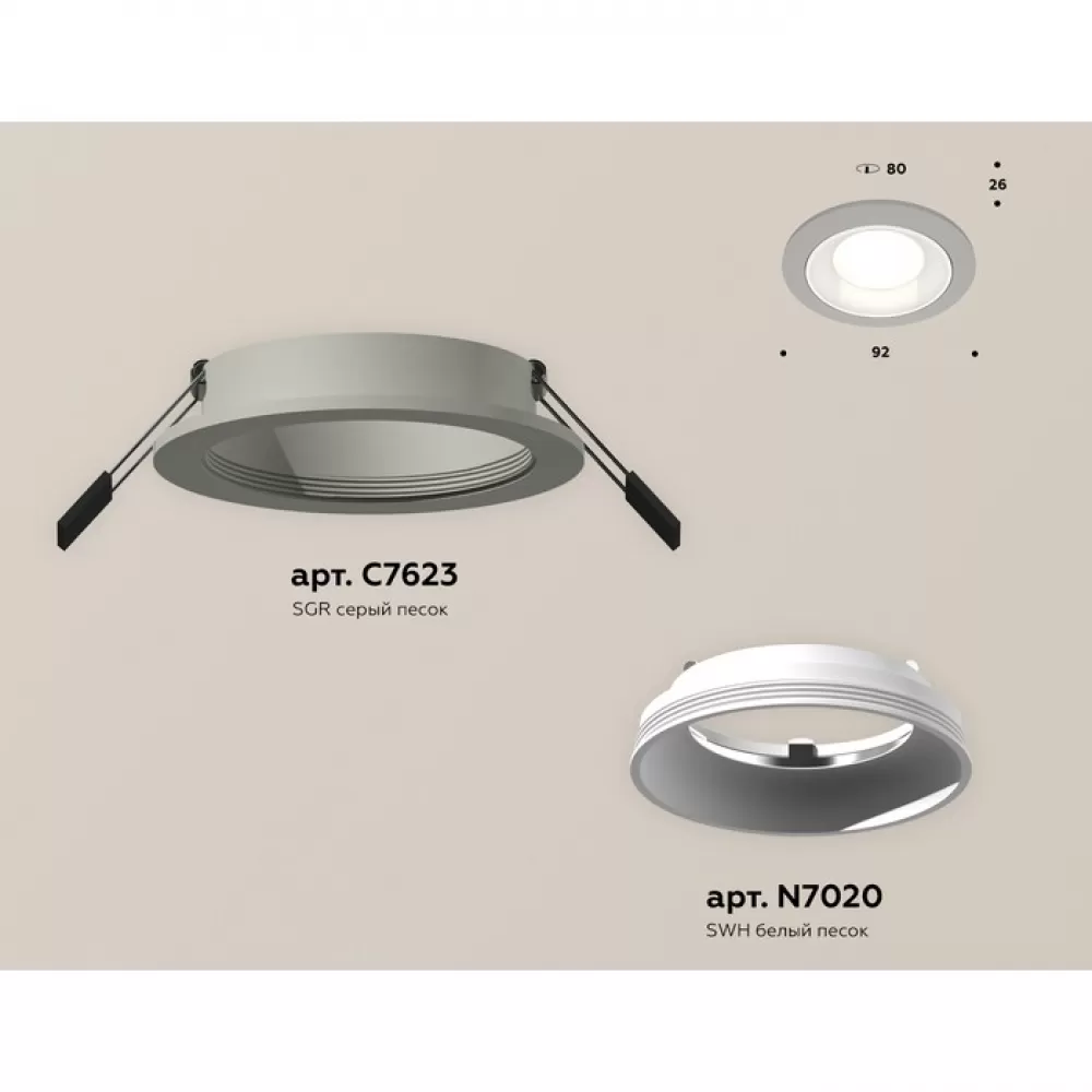 XC7623060 SGR/SWH серый песок/белый песок MR16 GU5.3 (C7623, N7020) Комплект встраиваемого светильника