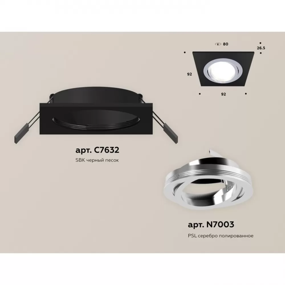 XC7632082 SBK/PSL черный песок/серебро полированное MR16 GU5.3 (C7632, N7003) Комплект встраиваемого поворотного светильника
