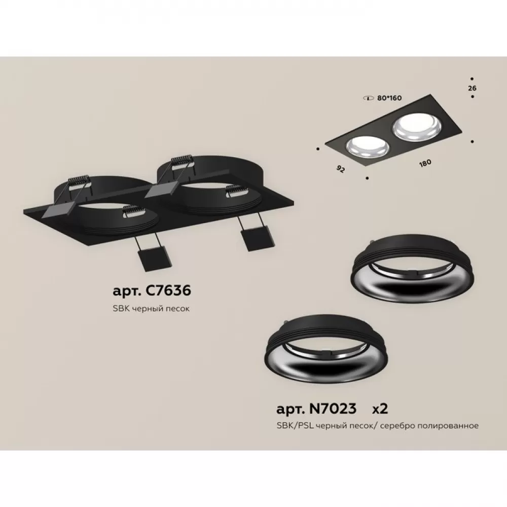 XC7636061 SBK/PSL черный песок/серебро полированное MR16 GU5.3 (C7636, N7023) Комплект встраиваемого светильника