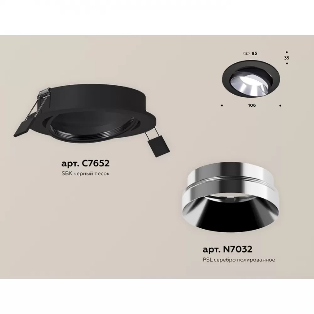 XC7652022 SBK/PSL черный песок/серебро полированное MR16 GU5.3 (C7652, N7032) Комплект встраиваемого поворотного светильника