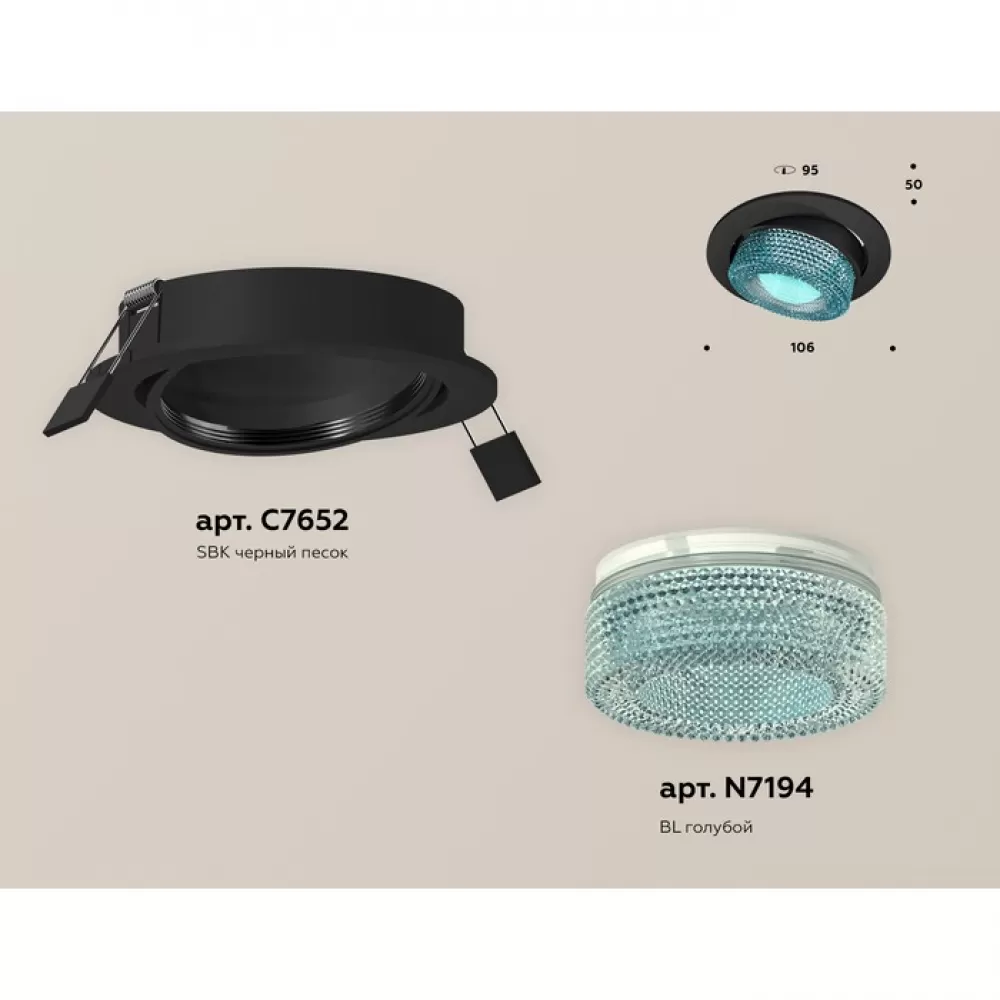 XC7652063 SBK/BL черный песок/голубой MR16 GU5.3 (C7652, N7194) Комплект встраиваемого поворотного светильника