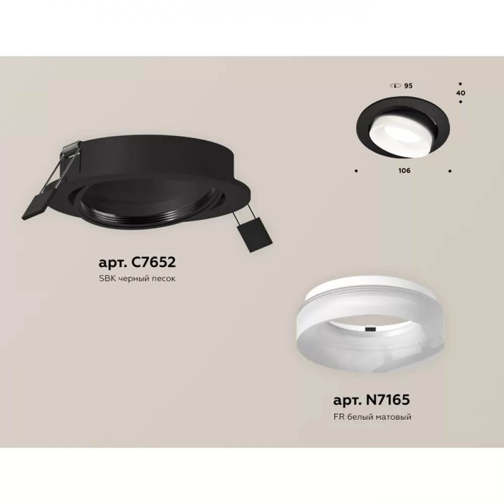 XC7652084 SBK/FR черный песок/белый матовый MR16 GU5.3 (C7652, N7165) Комплект встраиваемого поворотного светильника