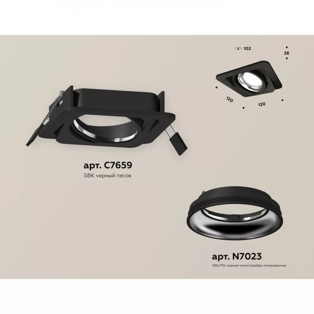 XC7659002 SBK/PSL черный песок/серебро полированное MR16 GU5.3 (C7659, N7023) Комплект встраиваемого поворотного светильника