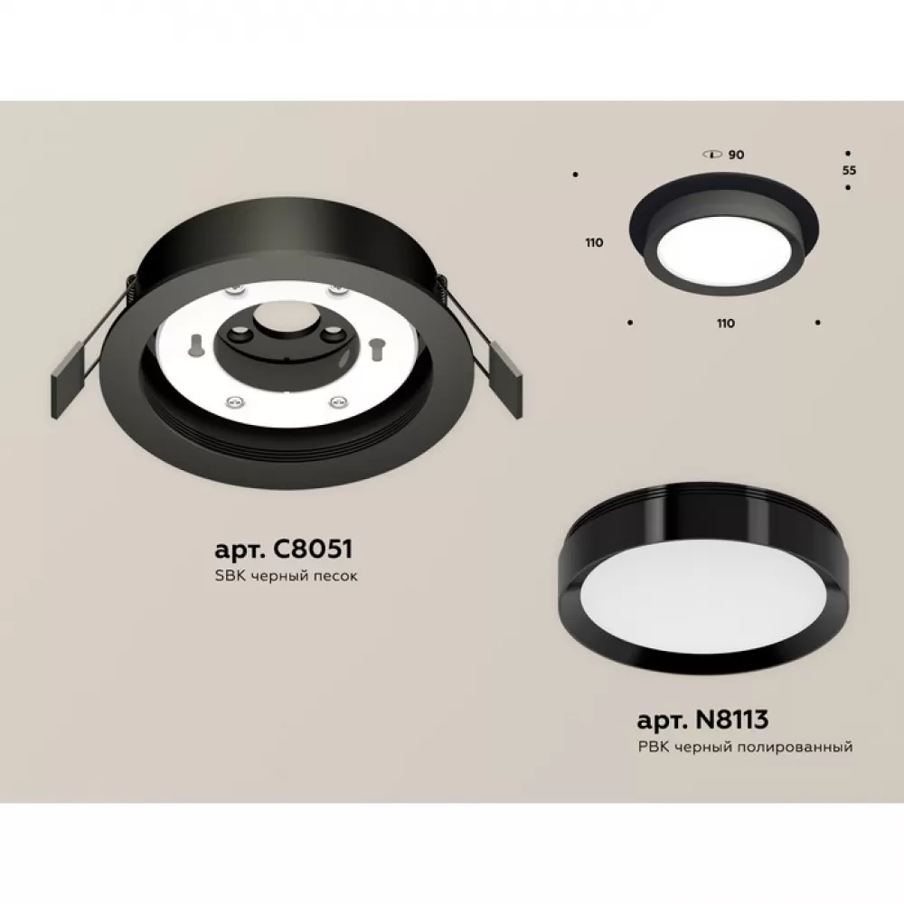 XC8051002 SBK/PBK черный песок/черный полированный GX53 (C8051, N8113) Комплект встраиваемого светильника