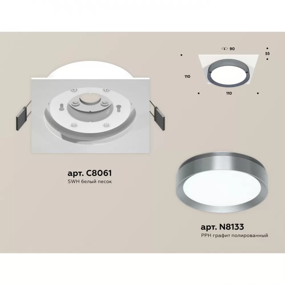 XC8061007 SWH/PPH белый песок/графит полированный GX53 (C8061, N8133) Комплект встраиваемого светильника