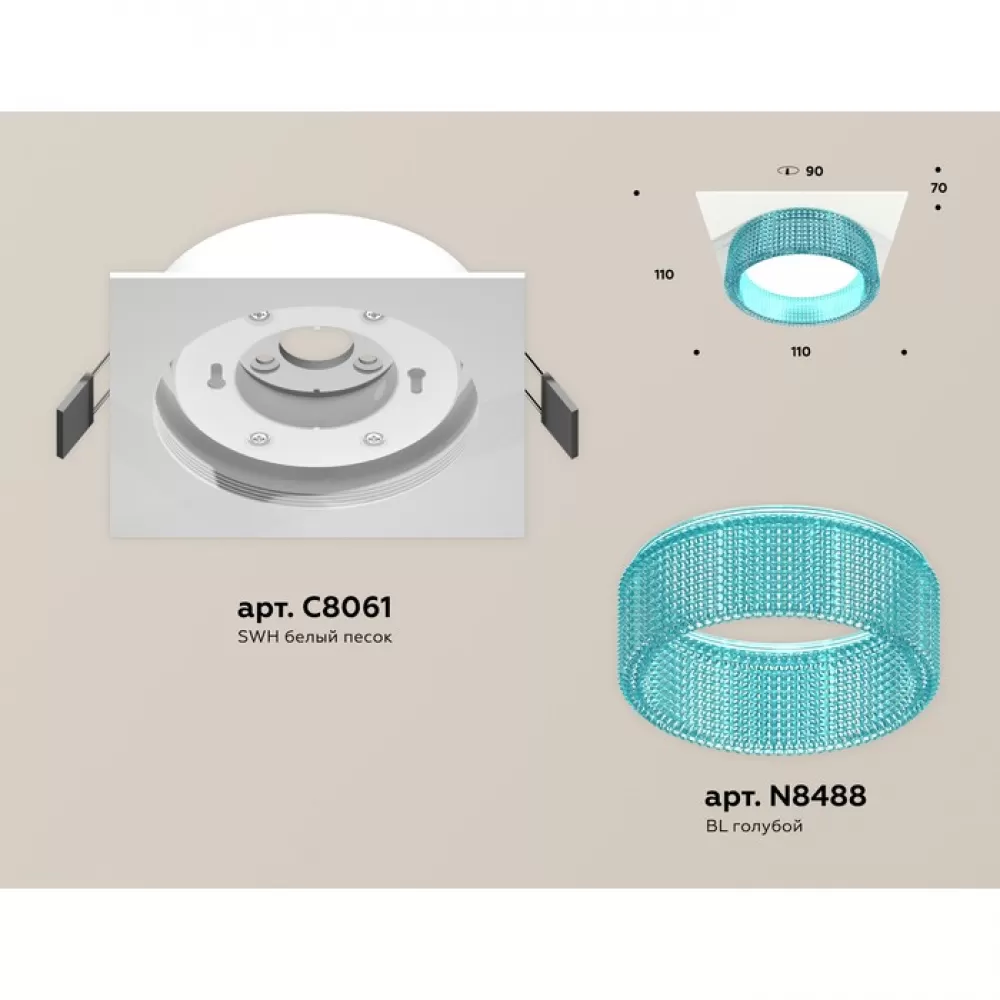 XC8061033 SWH/BL белый песок/голубой GX53 (C8061, N8488) Комплект встраиваемого светильника