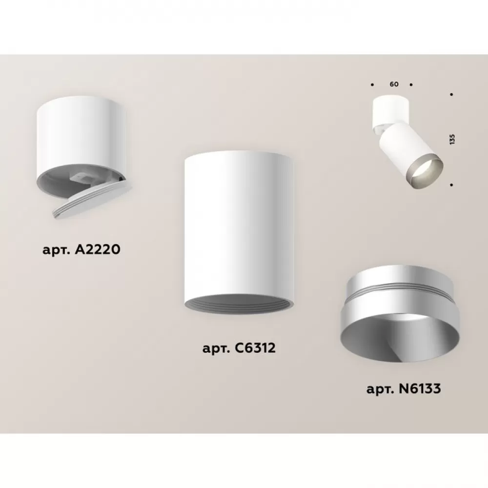 XM6312043 SWH/WH/MCH белый песок/белый/хром матовый MR16 GU5.3 (A2220, C6312, N6133) Комплект накладного поворотного светильника