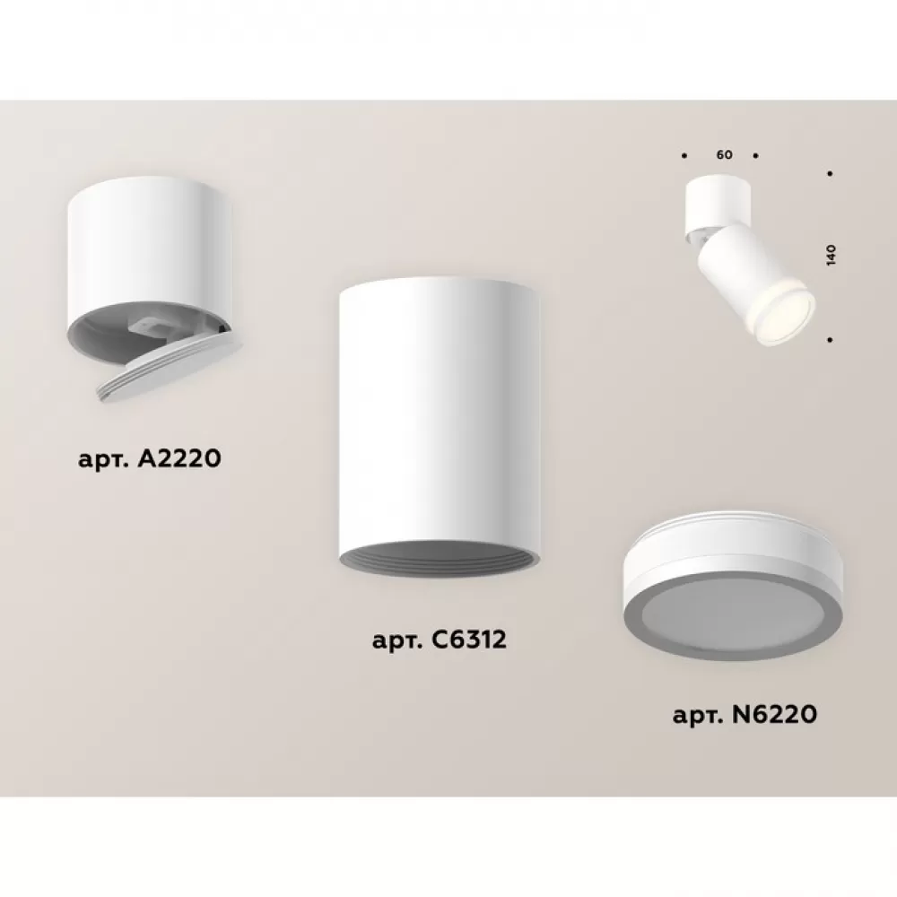 XM6312084 SWH/WH/FR белый песок/белый/белый матовый MR16 GU5.3 (A2220, C6312, N6220) Комплект накладного поворотного светильника
