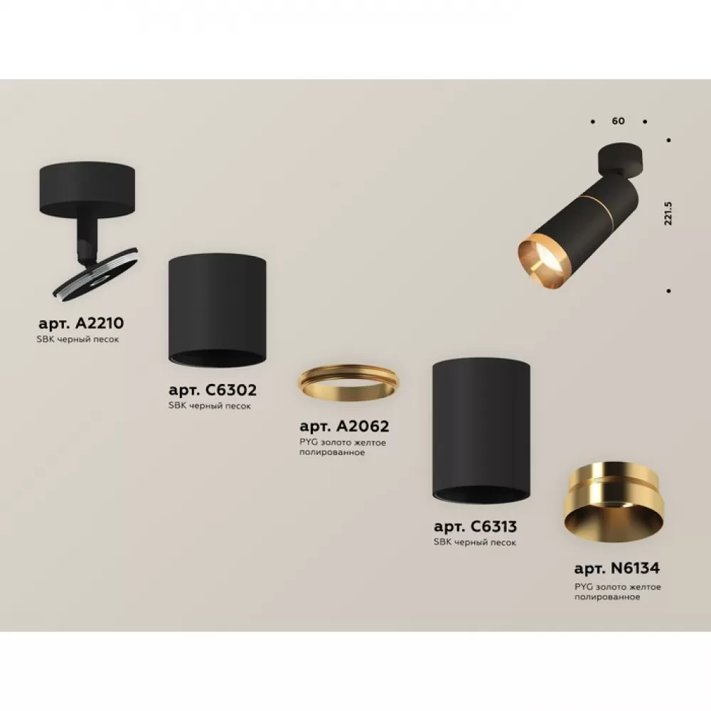 XM6313012 SBK/PYG черный песок/золото желтое полированное MR16 GU5.3 Комплект поворотного светильника