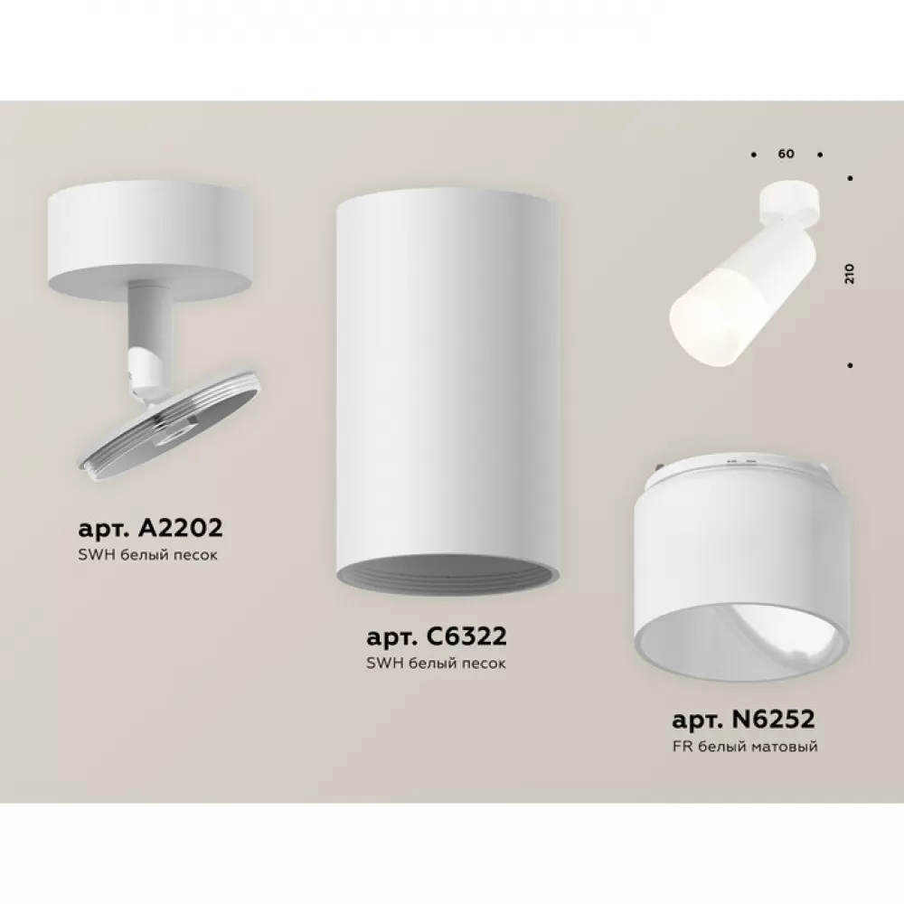 XM6322012 SWH/FR белый песок/белый матовый MR16 GU5.3 (A2202, C6322, N6252) Комплект поворотного светильника с акрилом
