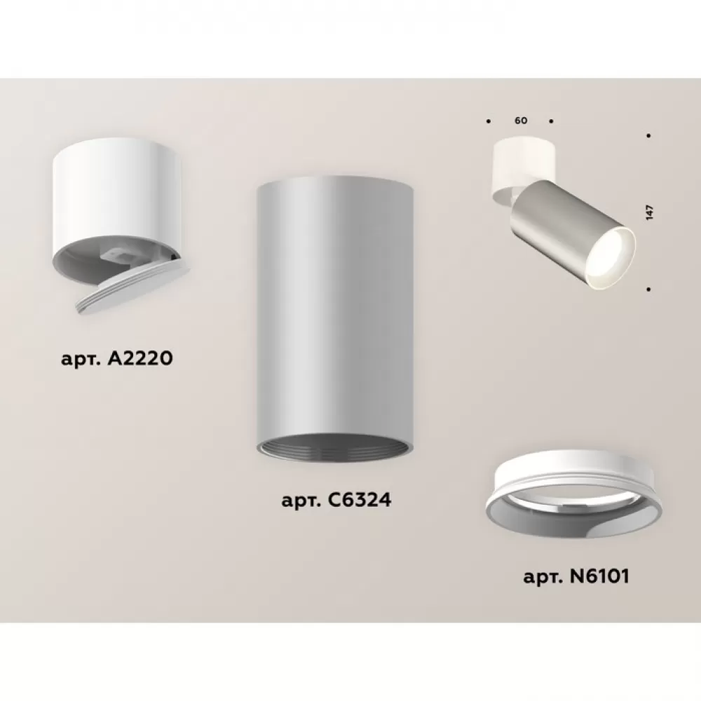 XM6324030 SSL/WH/SWH серебро песок/белый/белый песок (A2220, C6324, N6101) Комплект накладного поворотного светильника