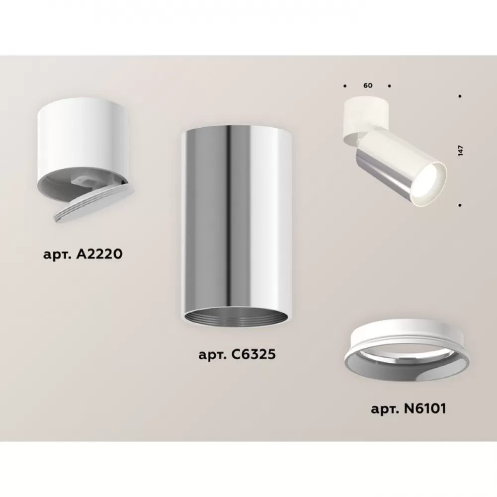 XM6325030 PSL/WH/SWH серебро полированное/белый/белый песок (A2220, C6325, N6101) Комплект накладного поворотного светильника