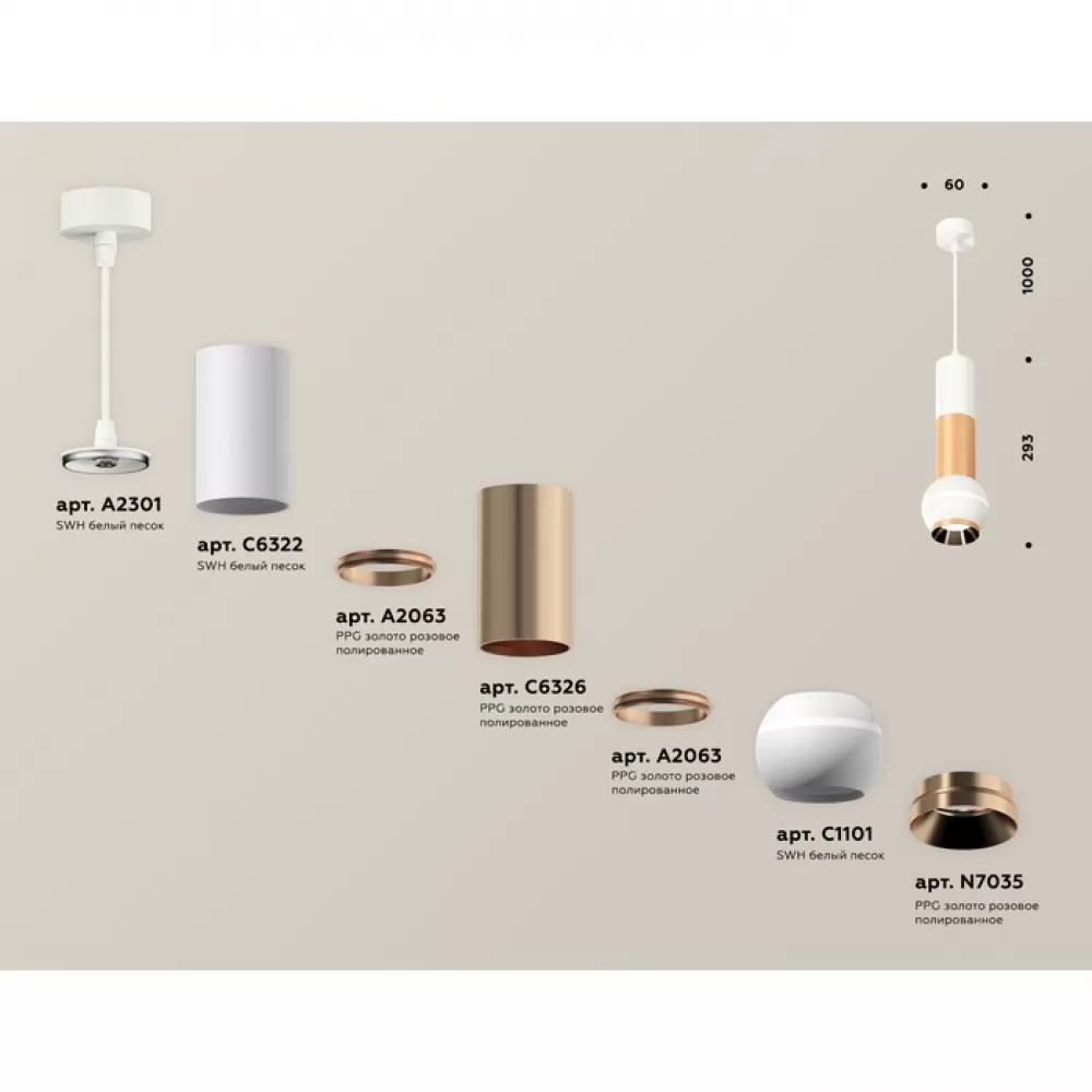 XP1101040 SWH/PPG белый песок/золото розовое полированное MR16 GU5.3 LED 3W 4200K Комплект подвесного светильника с дополнительной подсветкой