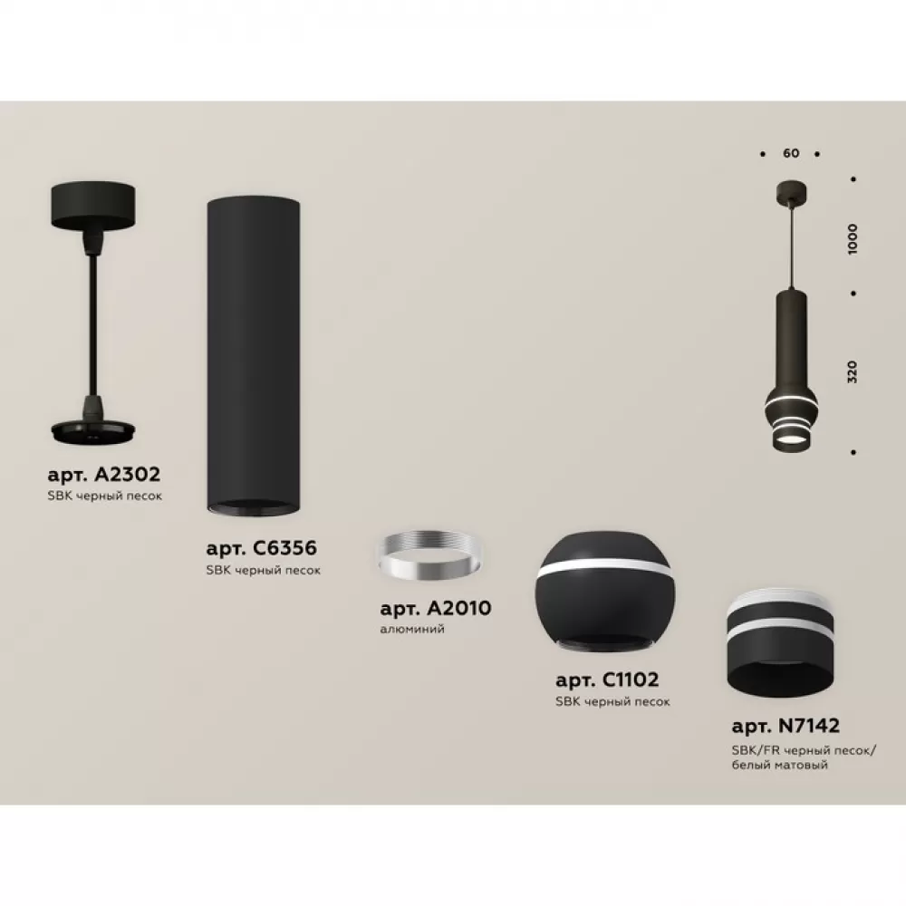 XP1102011 SBK/FR черный песок/белый матовый MR16 GU5.3 LED 3W 4200K Комплект подвесного светильника с дополнительной подсветкой