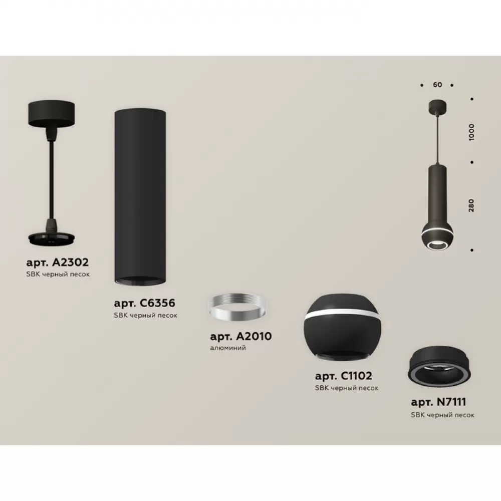 XP1102014 SBK/FR черный песок/белый матовый MR16 GU5.3 LED 3W 4200K Комплект подвесного светильника с дополнительной подсветкой
