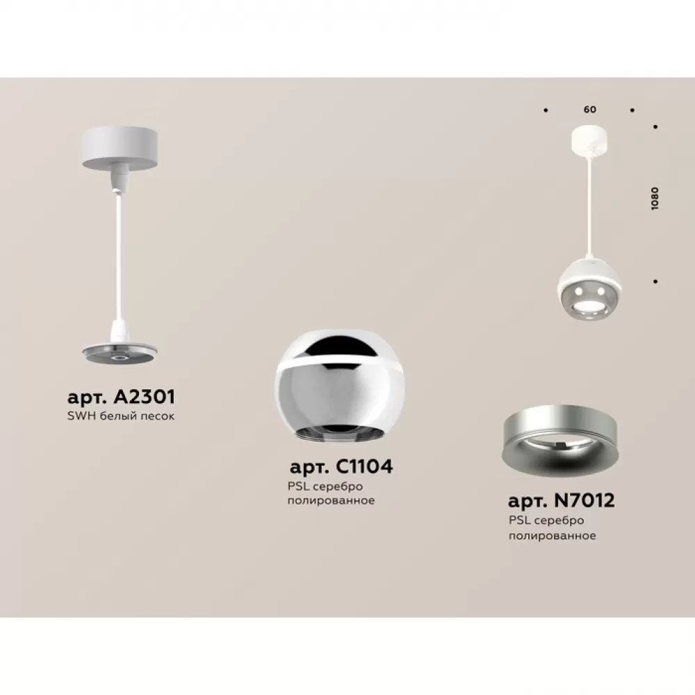 XP1104001 PSL/SWH серебро полированное/белый песок MR16 GU5.3 LED 3W 4200K (A2301, C1104, N7012) Комплект подвесного светильника с дополнительной подсветкой