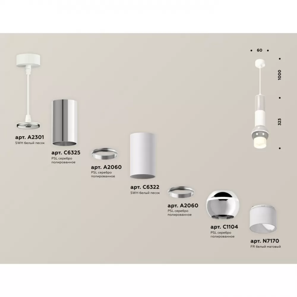 XP1104010 PSL/SWH/FR серебро песок/белый песок/белый матовый MR16 GU5.3 LED 3W 4200K Комплект подвесного светильника с дополнительной подсветкой