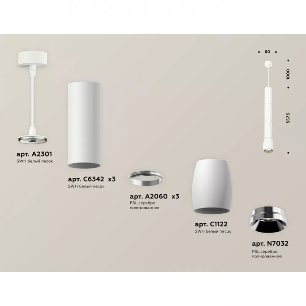 XP1122025 SWH/PSL белый песок/серебро полированное MR16 GU5.3 Комплект подвесного светильника