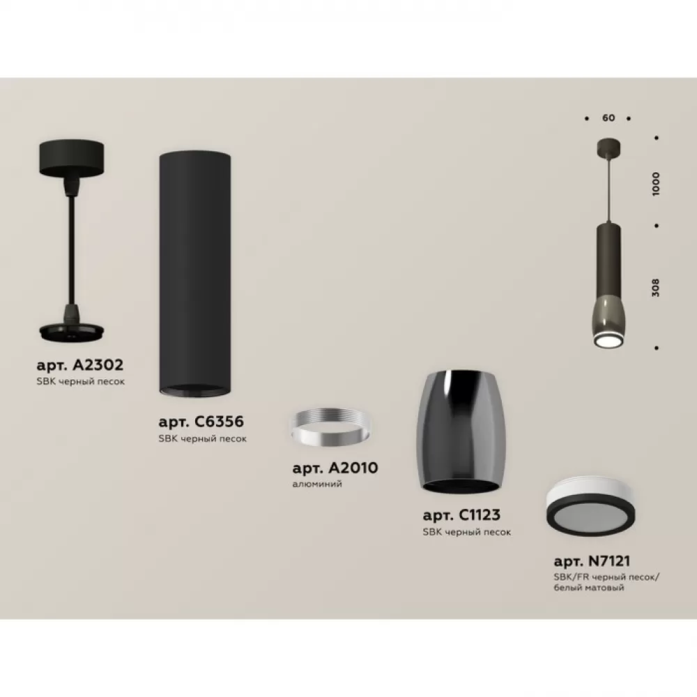XP1123002 DCH/SBK/FR черный хром/черный песок/белый матовый MR16 GU5.3 Комплект подвесного светильника с акрилом