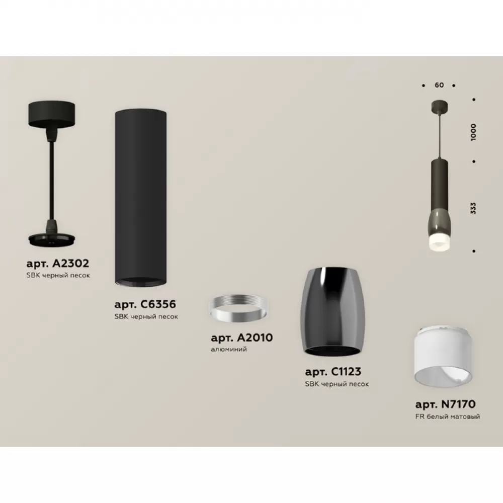 XP1123004 DCH/SBK/FR черный хром/черный песок/белый матовый MR16 GU5.3 Комплект подвесного светильника с акрилом
