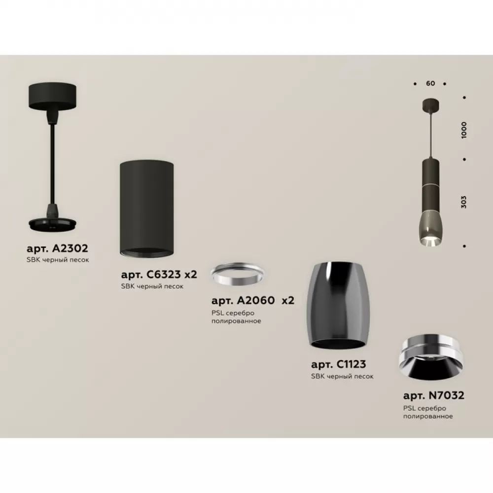 XP1123010 DCH/SBK/PSL черный хром/черный песок/серебро полированное MR16 GU5.3 Комплект подвесного светильника