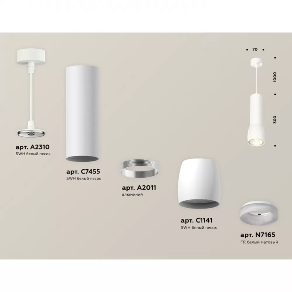 XP1141010 SWH/FR белый песок/белый матовый MR16 GU5.3 (A2310, C7455, A2011, C1141, N7165) Комплект подвесного светильника с акрилом
