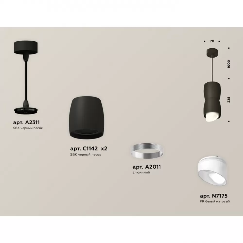 XP1142031 SBK/FR черный песок/белый матовый MR16 GU5.3 (A2311, C1142, A2011, C1142, N7175) Комплект подвесного светильника с акрилом
