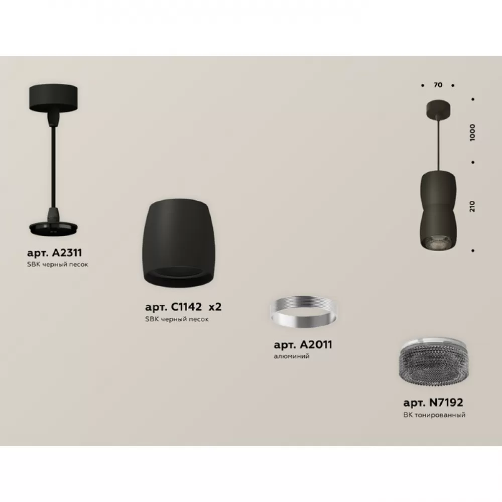 XP1142032 SBK/BK черный песок/тонированный MR16 GU5.3 (A2311, C1142, A2011, C1142, N7192) Комплект подвесного светильника с композитным хрусталем