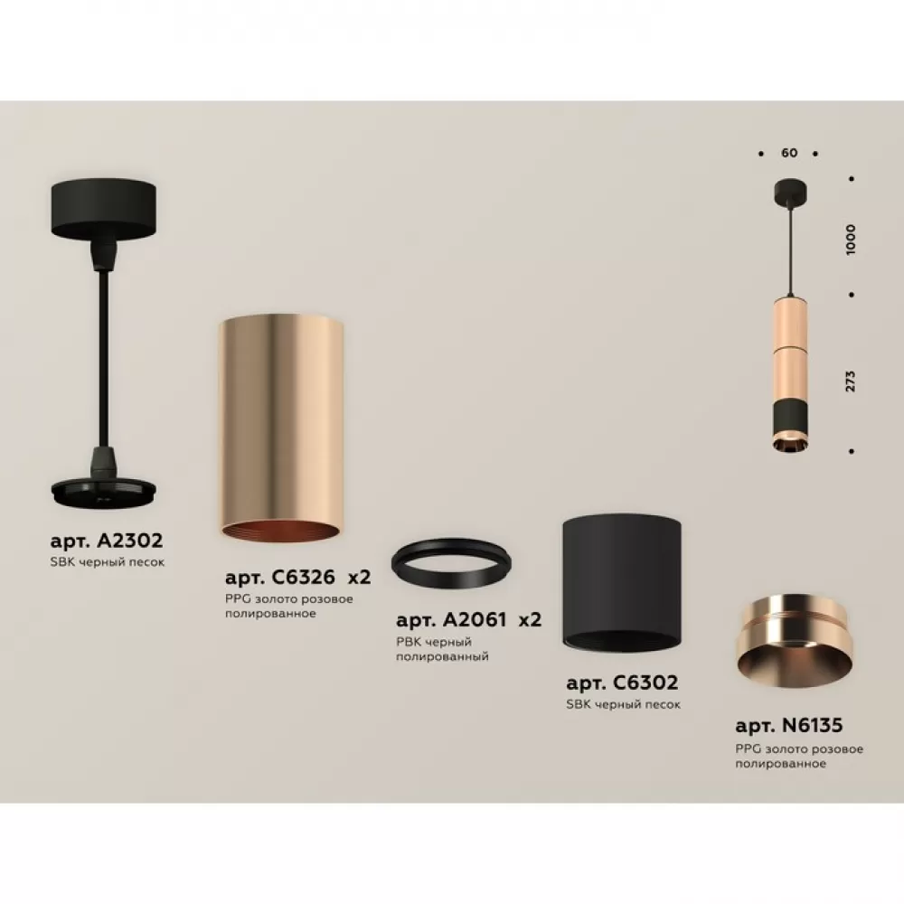 XP6302010 PPG/SBK золото розовое полированное/черный песок MR16 GU5.3 Комплект подвесного светильника
