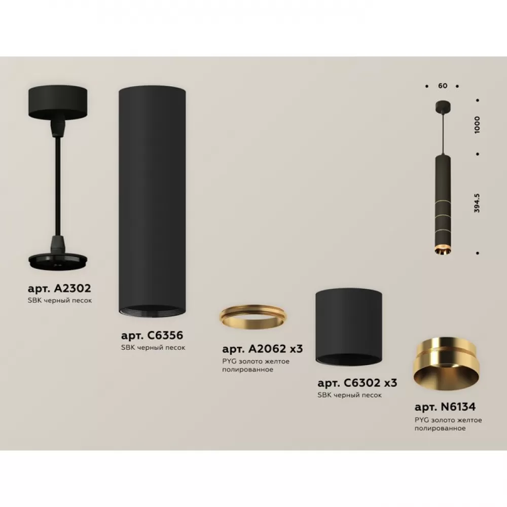 XP6302050 SBK/PYG черный песок/золото желтое полированное MR16 GU5.3 Комплект подвесного светильника