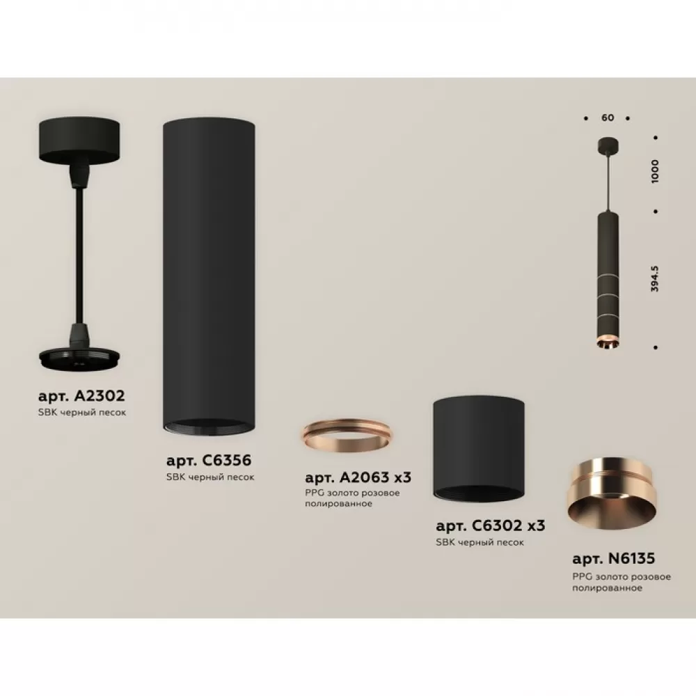 XP6302060 SBK/PPG черный песок/золото розовое полированное MR16 GU5.3 Комплект подвесного светильника