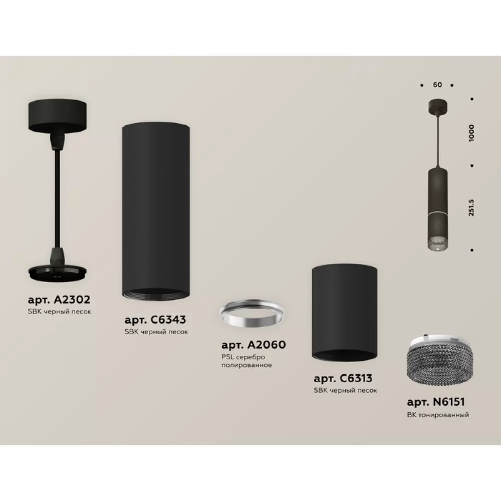 XP6313010 SBK/BK черный песок/тонированный MR16 GU5.3 (A2302, C6343, A2060, C6313, N6151) Комплект подвесного светильника с композитным хрусталем