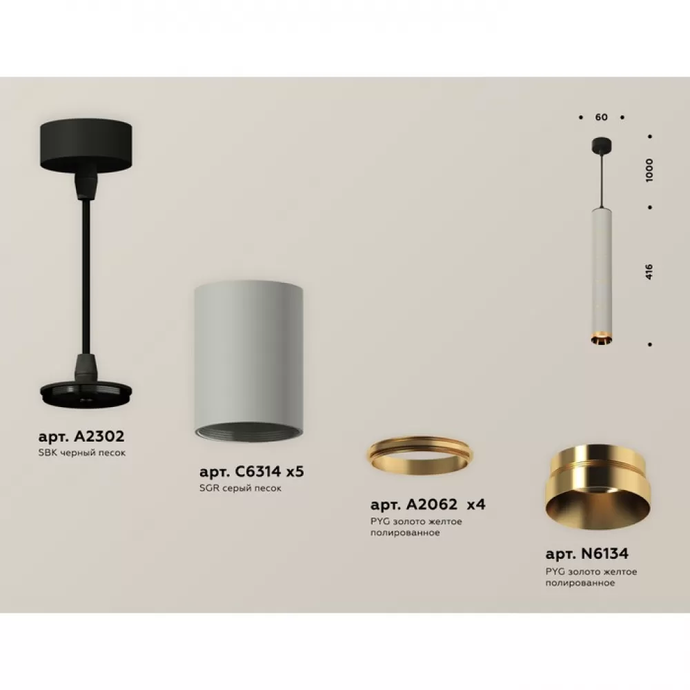 XP6314030 SGR/SBK/PYG серый песок/черный песок/золото желтое полированное MR16 GU5.3 Комплект подвесного светильника