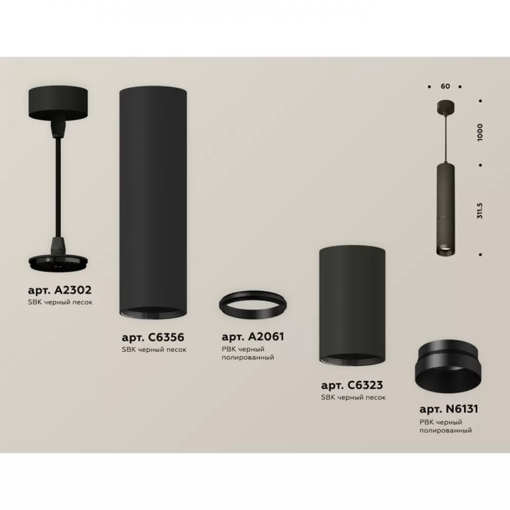 XP6323010 SBK/PBK черный песок/черный полированный MR16 GU5.3 (A2302, C6356, A2061, C6323, N6131) Комплект подвесного светильника