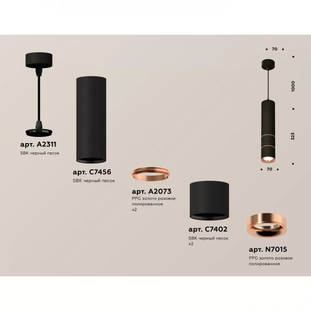 XP7402085 SBK/PPG черный песок/золото розовое полированное MR16 GU5.3 Комплект подвесного светильника