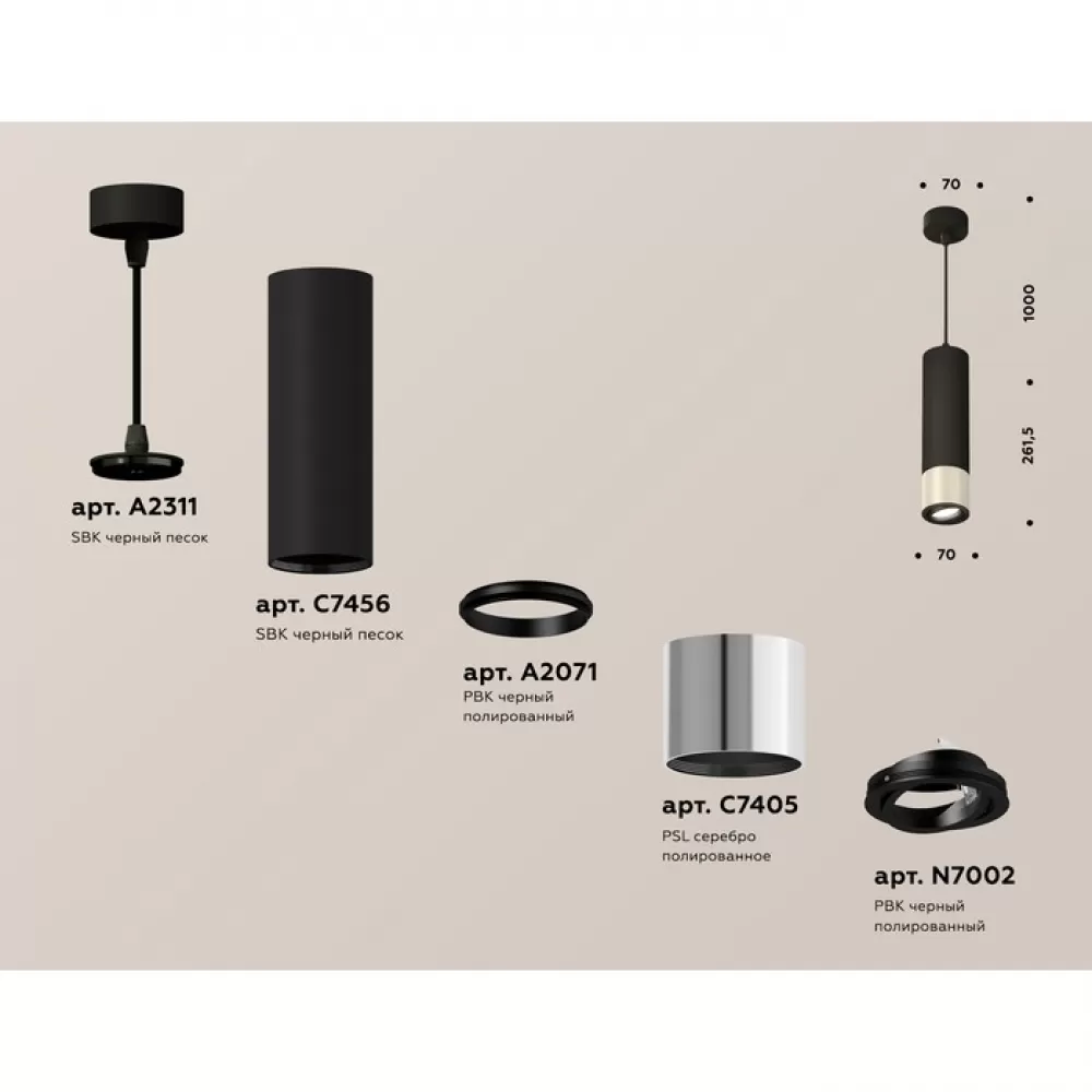 XP7405002 PSL/SBK/PBK серебро полированное/черный песок/черный полированный MR16 GU5.3 Комплект подвесного поворотного светильника