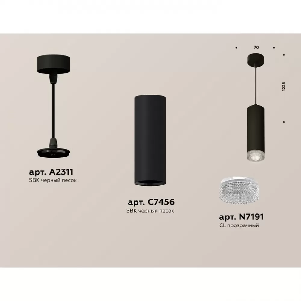 XP7456001 SBK/CL черный песок/прозрачный MR16 GU5.3 (A2311, C7456, N7191) Комплект подвесного светильника с композитным хрусталем