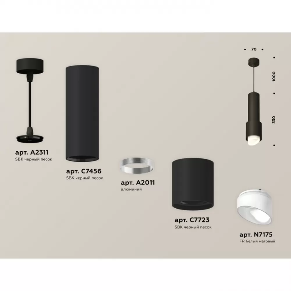 XP7723011 SBK/FR черный песок/белый матовый MR16 GU5.3 (A2311, C7456, A2010, C7723, N7175) Комплект подвесного светильника с акрилом