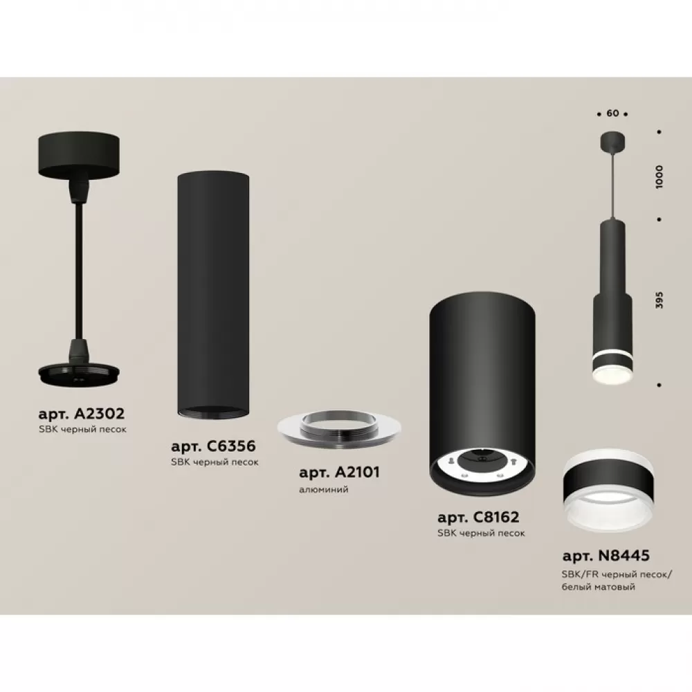 XP8162002 SBK/FR черный песок/белый матовый GX53 (A2302, C6356, A2101, C8162, N8445) Комплект подвесного светильника с акрилом