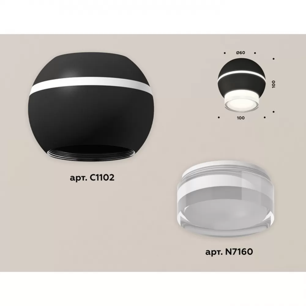 XS1102042 SBK/FR/CL черный песок/белый матовый/прозрачный MR16 GU5.3 LED 3W 4200K (C1102, N7160) Комплект накладного светильника с дополнительной подсветкой