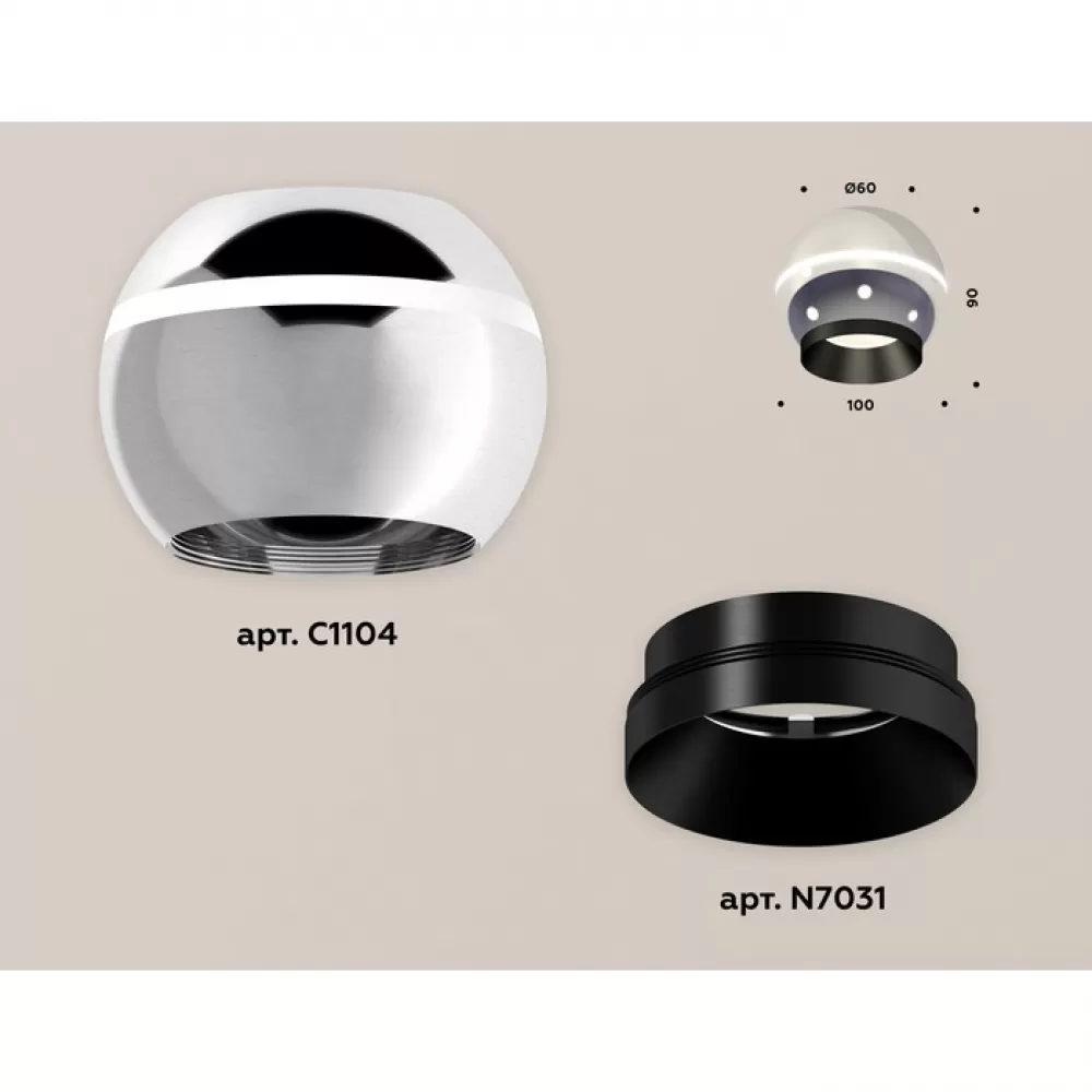 XS1104001 PSL/PBK серебро полированное/черный полированный MR16 GU5.3 LED 3W 4200K (C1104, N7031) Комплект накладного светильника с дополнительной подсветкой