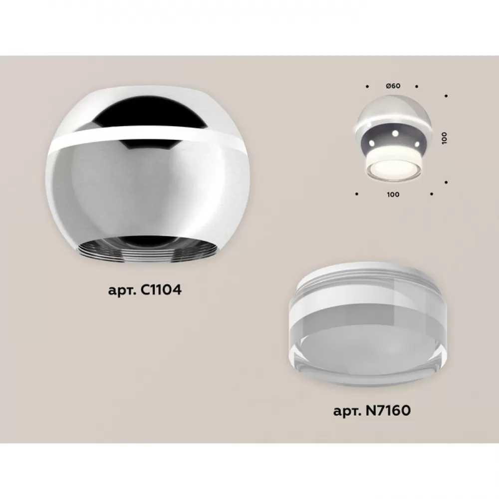 XS1104031 PSL/FR серебро полированное/белый матовый MR16 GU5.3 LED 3W 4200K (C1104, N7160) Комплект накладного светильника с дополнительной подсветкой