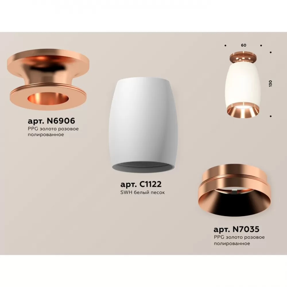 XS1122045 SWH/PPG белый песок/золото розовое полированное MR16 GU5.3 (N6906, C1122, N7035) Комплект накладного светильника