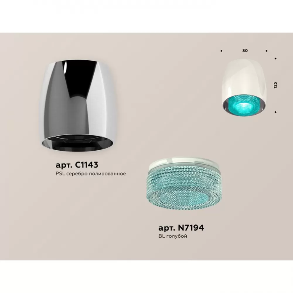 XS1143011 PSL/BL серебро полированное/голубой MR16 GU5.3 (C1143, N7194) Комплект накладного светильника с композитным хрусталем