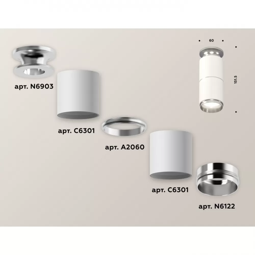 XS6301241 SWH/PSL белый песок/серебро полированное MR16 GU5.3 (N6903, C6301, A2060, N6122) Комплект накладного светильника