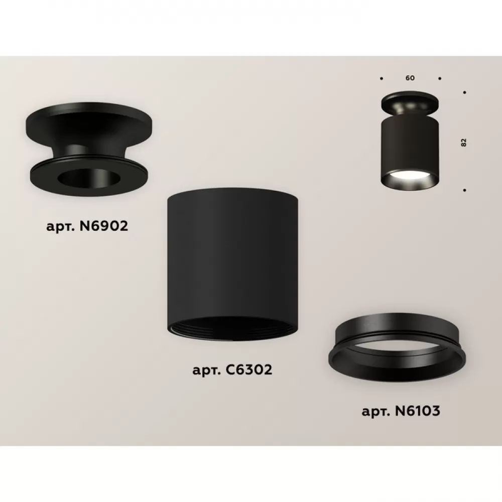 XS6302100 SBK/PBK черный песок/черный полированный MR16 GU5.3 (N6902, C6302, N6103) Комплект накладного светильника