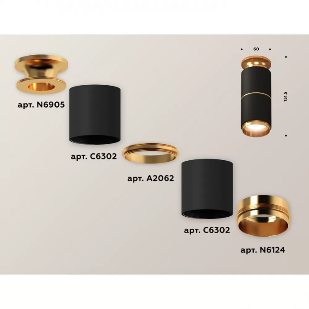 XS6302240 SBK/PYG черный песок/золото желтое полированное MR16 GU5.3 (N6905, C6302, A2062, N6124) Комплект накладного светильника